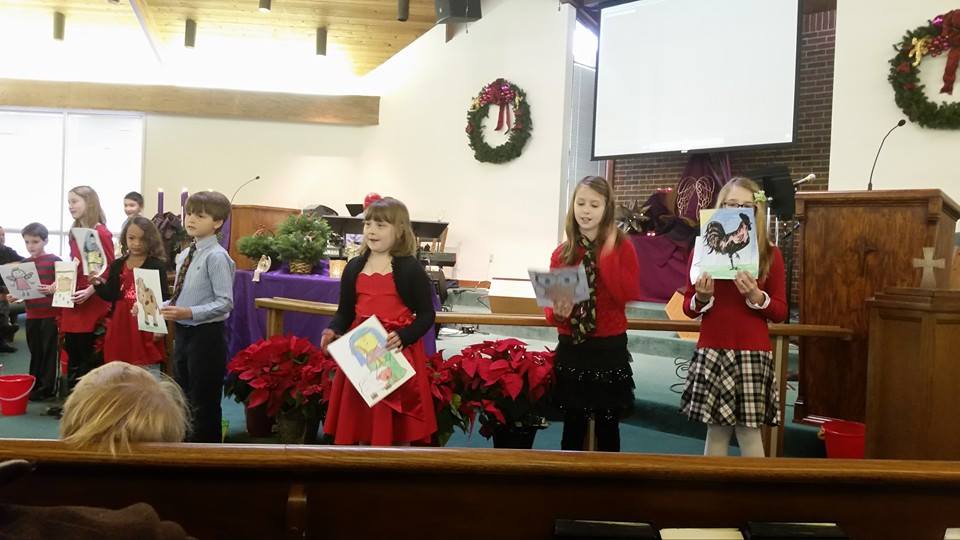 We chose a dance song “Yes, Jesus Loves Me,” from the Go Fish Guys and a poem where each student held up student art to represent the animals and folks involved in the Christmas story, then closed with “It’s About The Cross.”