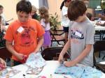 Ordering Sewing School: 21 Sewing Projects Kids Will Love To Make with kid-friendly graphics from Amazon, we chose two projects we thought the kids could accomplish in the time frame of 6-7:30 with tutor introductions at the beginning, a small break mid-way for a story about the sick woman healed by the power of even the touch of the fabric of Jesus’ cloak, and certificates with summer fun registration information attached.
