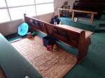 Promoted in person, bulletin and newsletter announcements, social media posts, and a sermon series on attitudes including the attitudes of gratitude and compassion kept the conversations going. Our pastor and trustees removed the pews, grandparents steam cleaned the floor space, rugs were ordered from Amazon, the senior pastor painted the wall, a trustee performed a safety inventory and made adjustments, other grandparents provided board books, foam blocks, receiving blankets, a bouncy seat, and a few small machine-washable stuffed animals.