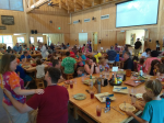 The plans for the day included small group time, a large group photo, lunch, a sharing by the Bishop with the children with a children’s Q&A, then the families could stay on campus to hike, swim in the huge pool with a cooler filled with freeze pops, play in the falls, family choice. With all this planned, the real action happened on the ball field.