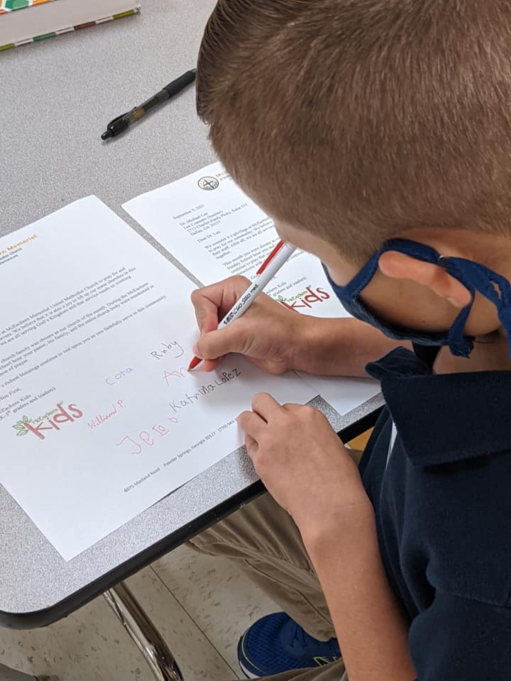 At the beginning of each month, we draft a letter to each organization, family, person. The students and our leaders sign their first names in fabulously colored ink to each letter upon arrival in the Welcome Center to be mailed the following week. One example would be: