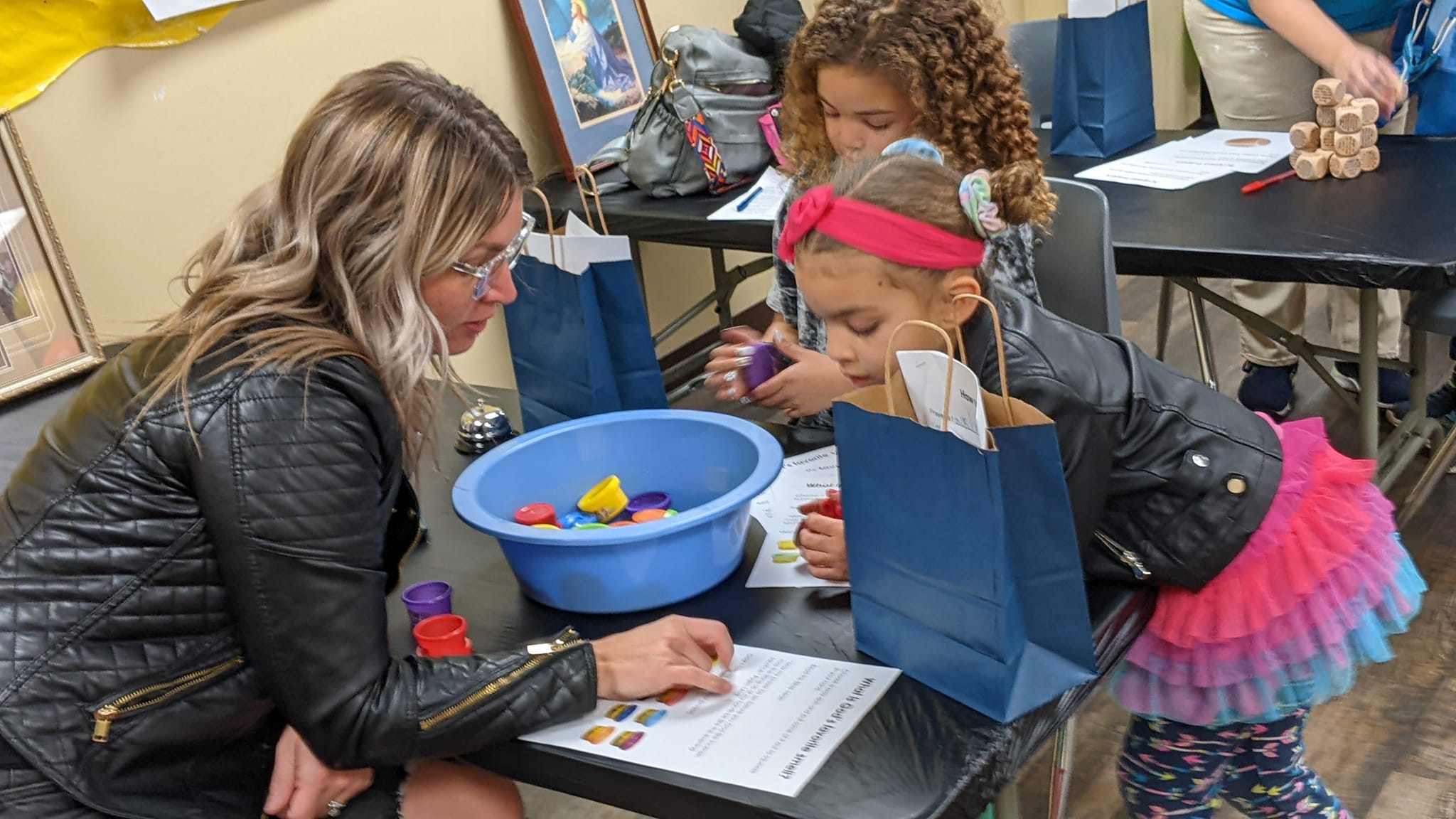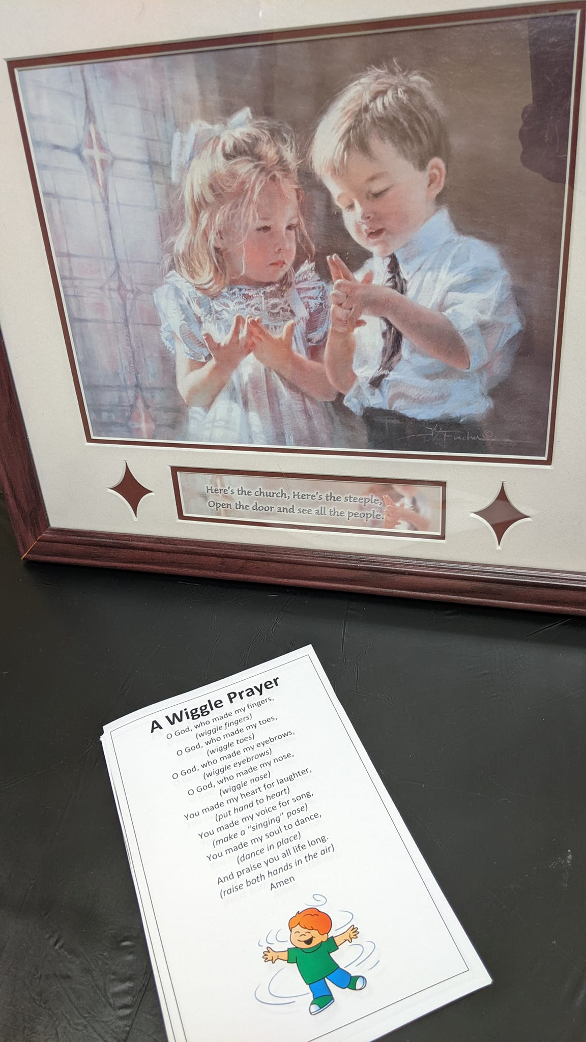 5:45-6pm Welcome; write-in the blank handout (big fills out the blanks while littles watch/listen and hold squishy Jesus); act out 2 prayer stations; surround room with pictures of kids praying artwork