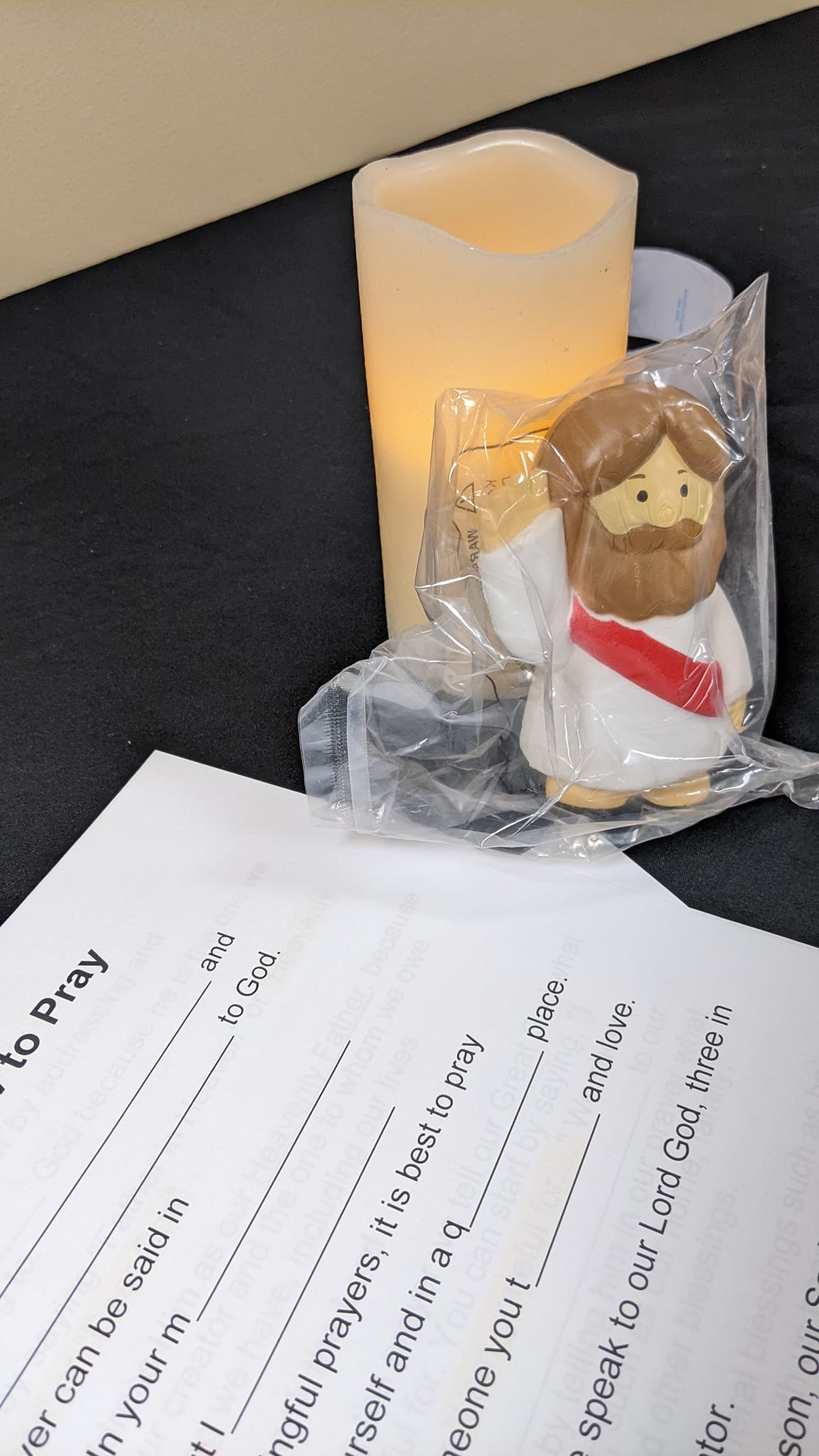 Prayer cubes leftover from last Easter (hardy, hand-held item with prayer language)