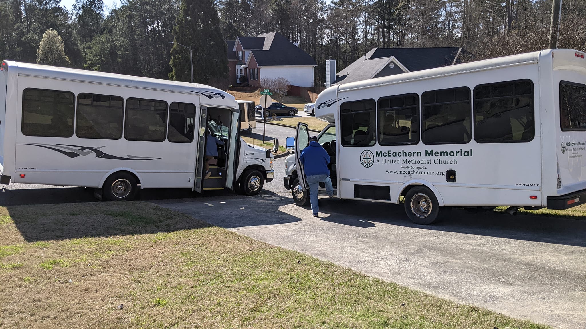 Other details: Water was the beverage of choice. Multiple tables along with some standing space to learn to hold a plate and eat standing up. The party number grew as we progressed to the locations. Our two bus drivers serve as leaders on church committees and looked great in their McEachern Kids’ t-shirts they’d been gifted with at prior events – I didn’t even have to ask, they chose those t-shirts on their own.