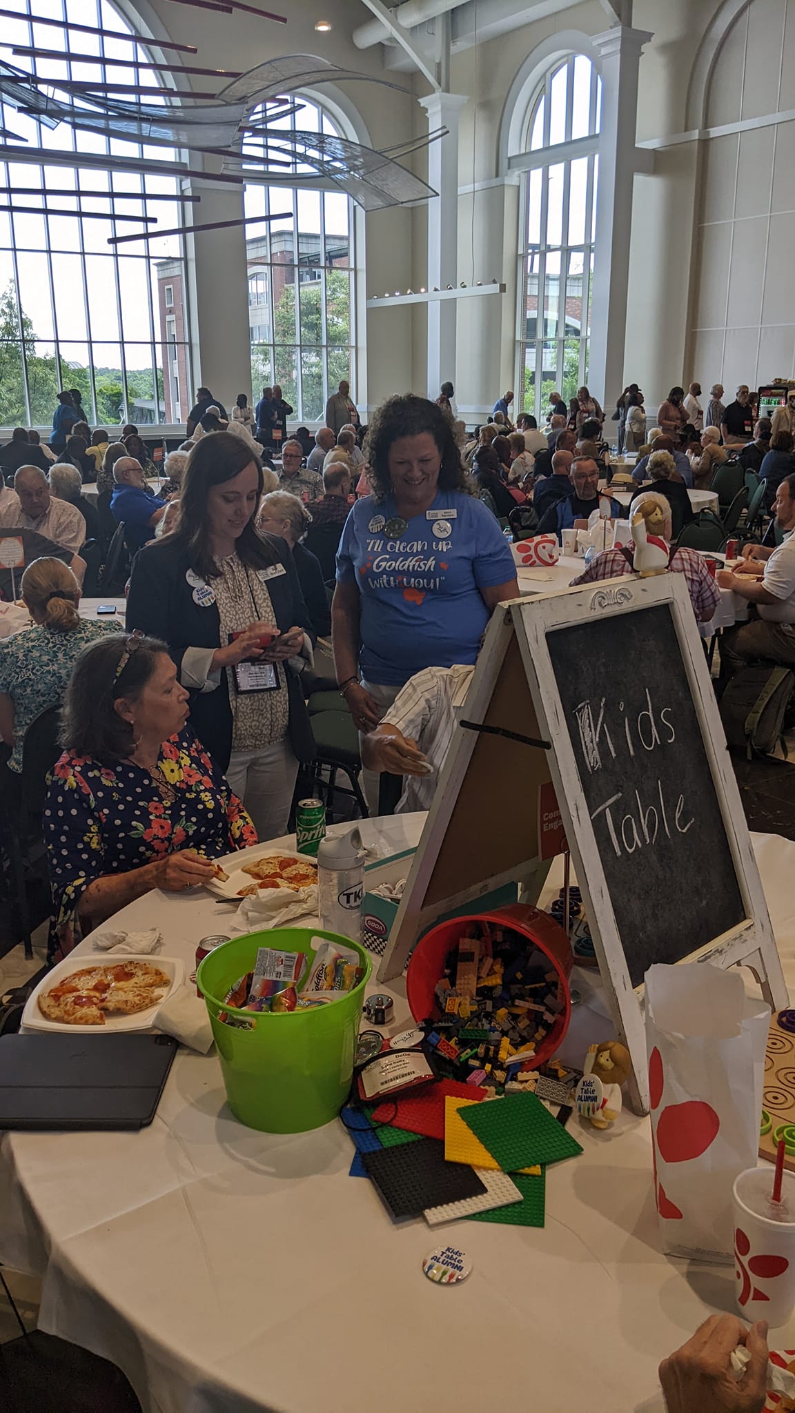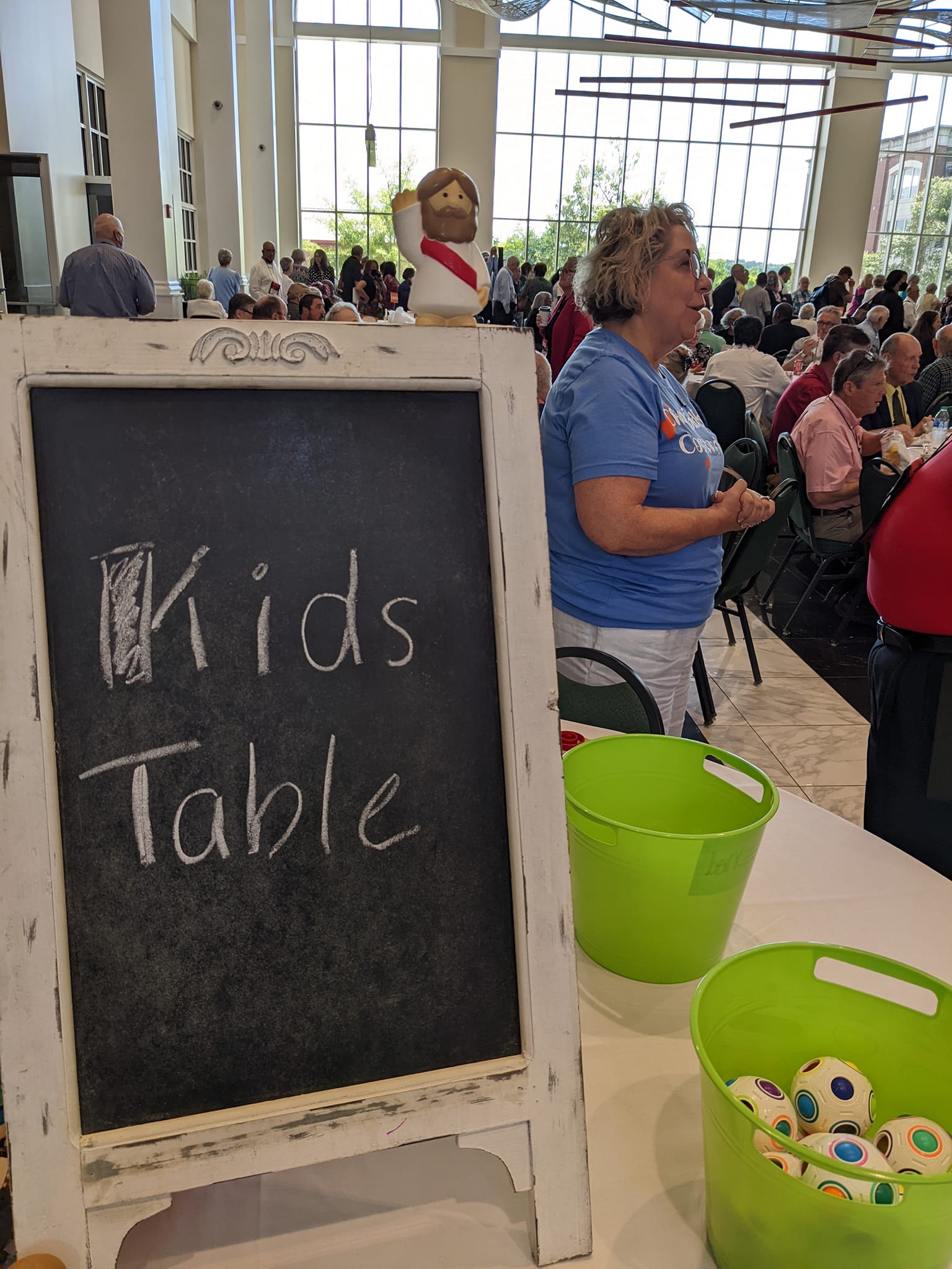 The kid’s table was set for the holy habit of play, for snack, and for good conversation about the local church’s ministry with children and families. We set up a pop-up table where the folks were at the times when critical mass was guaranteed, just outside the Grand Hall (the room where official delegate business was handled) in the Atrium where there were round tables and where people gathered for conversation and food.