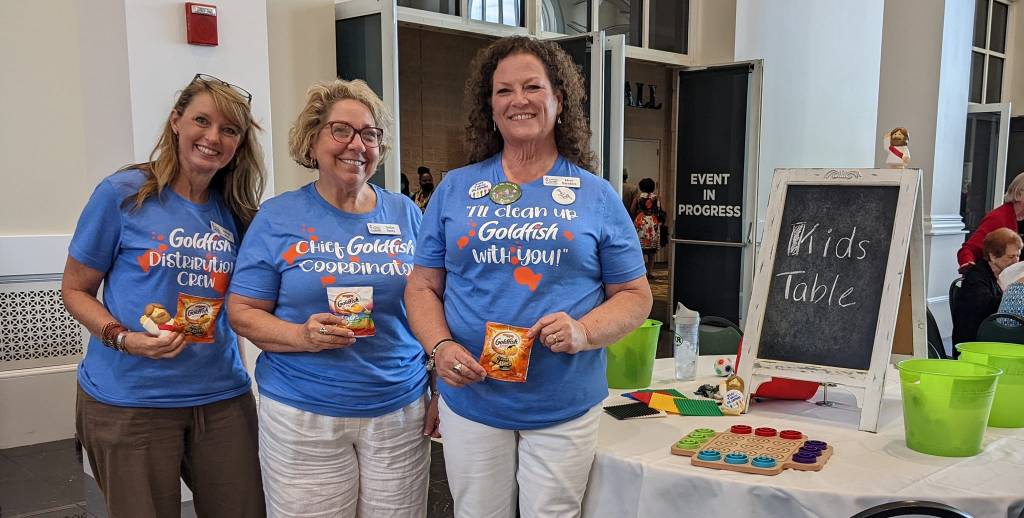 Snack – Animal crackers on day 1, Goldfish on day 2 in individual snack bags. Maslow teaches that if we meet one’s physical needs, we can more easily be trusted to meet other basic needs. We fed the masses like Jesus. When the line for lunch food was so very long wrapping around the Atrium, we handed out snack bags with a smile to hold folks over as they waited to order their lunches. Coming from a place of generosity, we went where the people were and offered what we had.