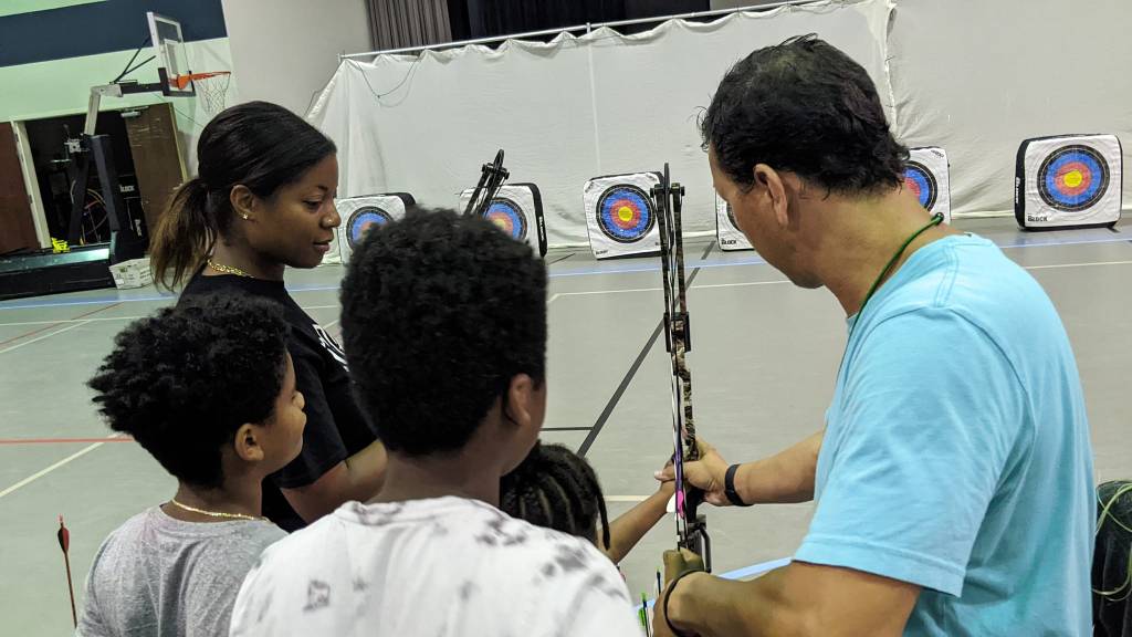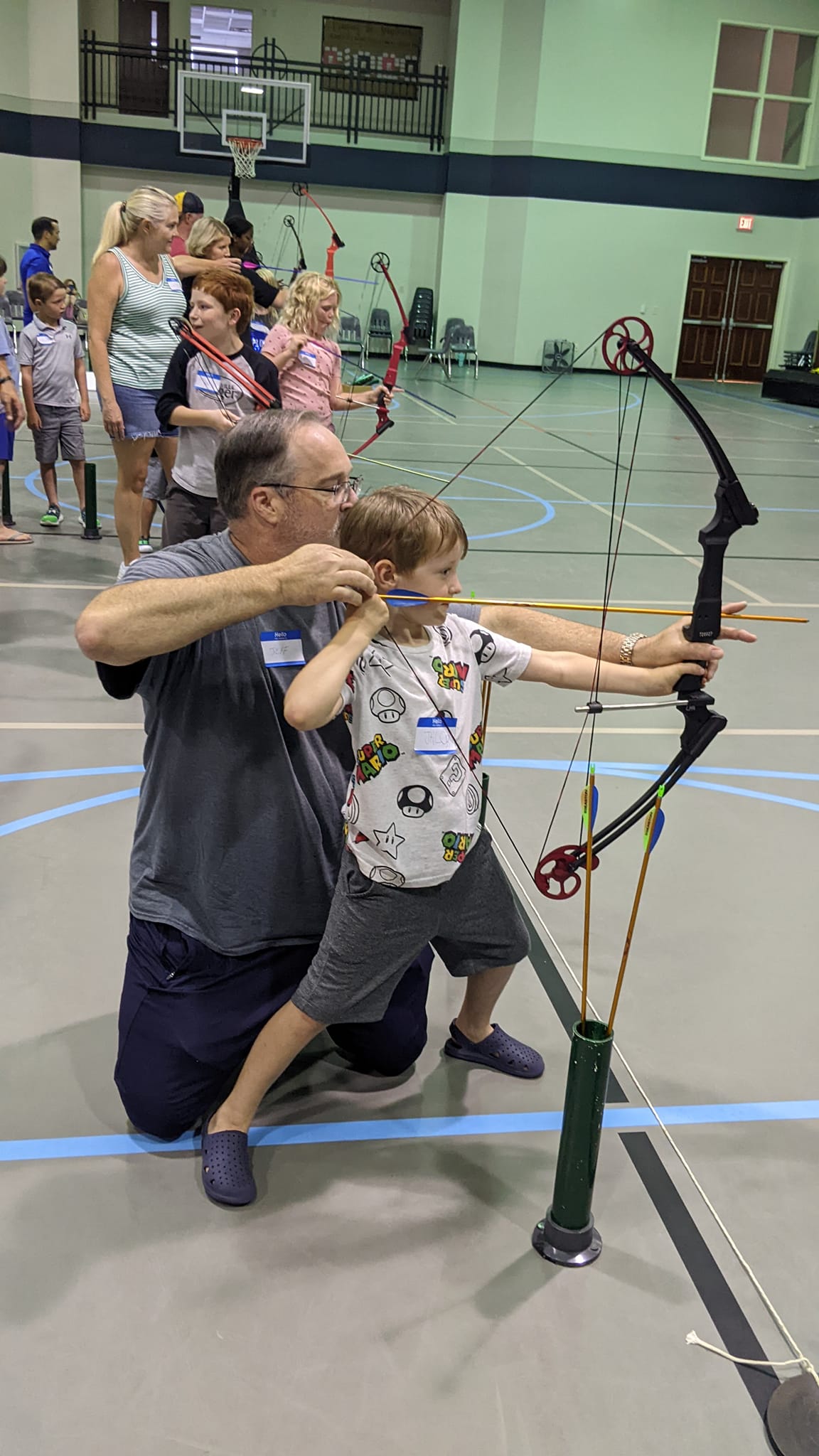 Coming from “What’s in my hand?”, our staff includes a great dad who is an archery coach for a private school, Shaun Nguyen. Coach Shaun began his interest in archery on a mission trip almost ten years ago. He applied for a grant to purchase all the equipment and his team now competes. I invited him to ‘set the table’ for smalls with their talls who love them as part of our Soul Food Summer campaign.