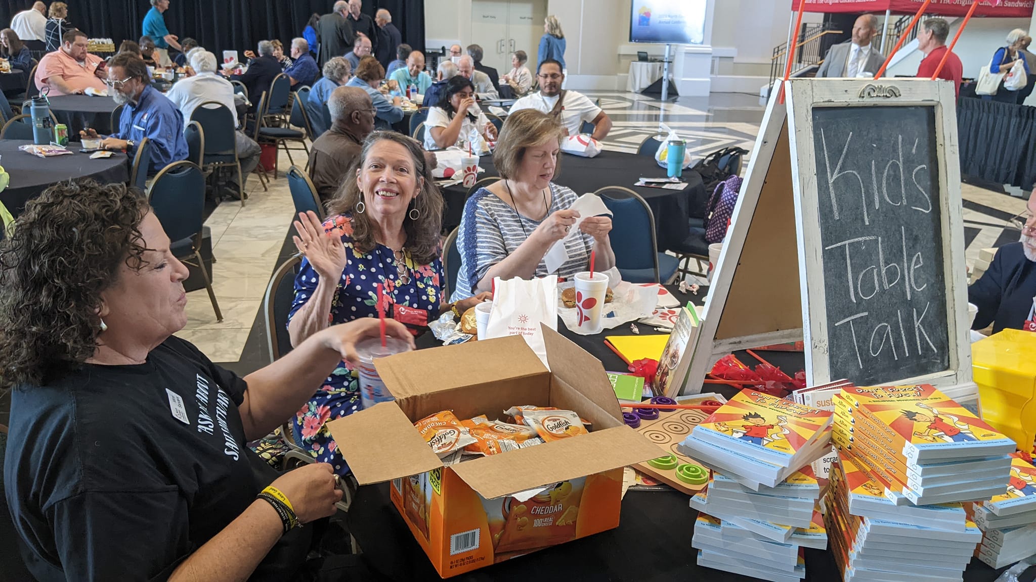 The Kid’s Table also had that sacred and holy of all church snacks: Goldfish. With 150 snack bags in hand, we travelled in twos with Goldfish for an afternoon snack asking “Would You Rather: Bible Edition” questions from table to table AND even at the bottom of the escalator for those coming back from enjoying lunch offsite. Jesus never sent His disciples out one at a time, but rather in twos, threes, and up to seventy.