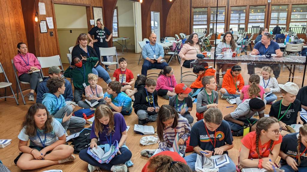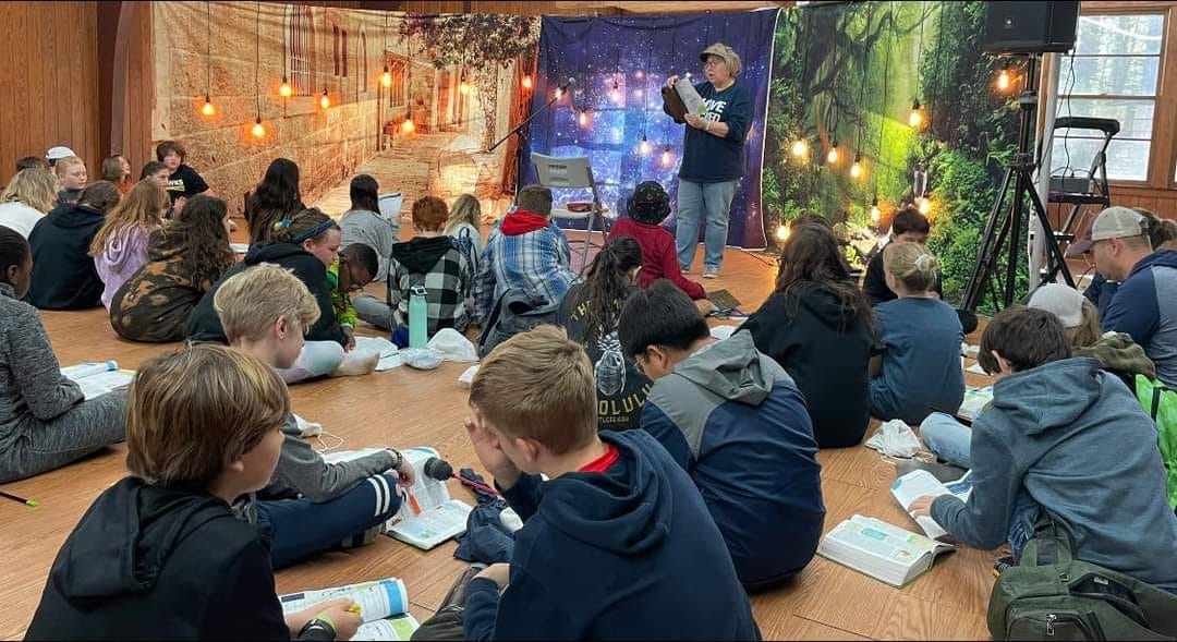 Music and a large group gets the party started in the dining hall, well-lit to begin the habit of taking notes in the prepared handbook. We bring our own kitchen team and rotate serving and cleanup among the churches and students in attendance. Students discover what we’re eating at each meal by searching the scriptures on their own time as part of the handbook which makes for some interesting group time in the cabins before bed. Early to bed because sleep matters.