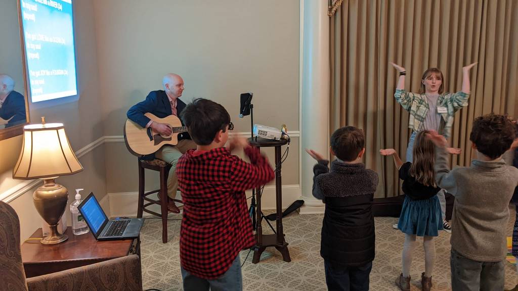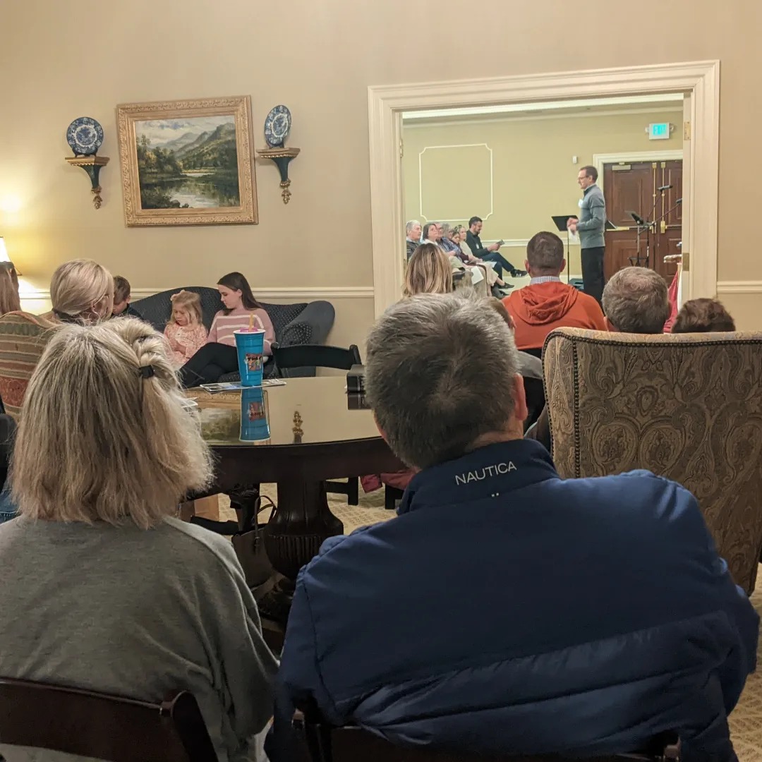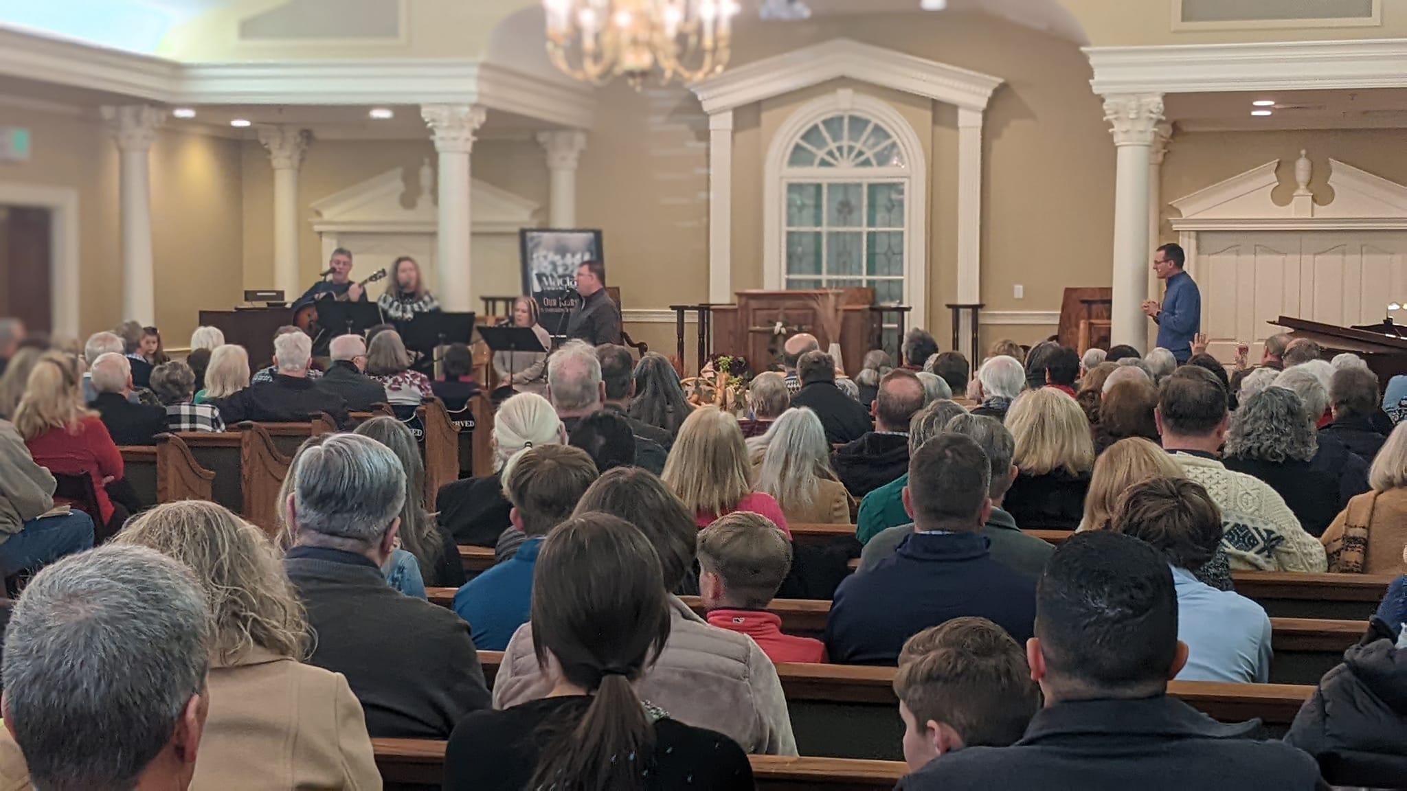 How we started: Due to the great generosity of a local funeral home, we’ve been offered spaces every Sunday morning, and other times as previously scheduled, for business meetings and special worship services such as Christmas Eve since Sunday, Nov. 19, 2023. The Sunday morning immediately following the Saturday afternoon the super majority were denied disaffiliation, folks gathered for small groups at 9:30am, then picked up their little people going directly to the funeral home across the street to celebrate God’s goodness and His faithfulness as a new congregation at 11am. Because a small group had prepared and talked through multiple scenarios, they even provided a paper bulletin in less than 12 hours. Because there were no inherited spaces nor culture, we started from a sacred scratch and the excitement is contagious.