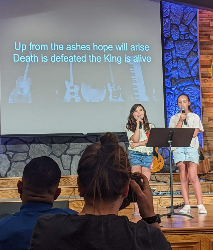 For instance, our 10-year-old granddaughter recently sang a duet of “I Raise A Hallelujah” with her sweet friend. The worship team invites anyone with a creative expression of praise and glory to the Lord to ‘audition’ a couple of weeks beforehand. The audition is mostly about the worship team coaching those auditioning about using microphones, music stands, timing, stage presence, and coordinating musical ‘support’. Those microphones can be pretty heavy for a little girl. The worship team sets the order of worship with those who have auditioned and makes all the accommodations necessary for an evening of family worship.