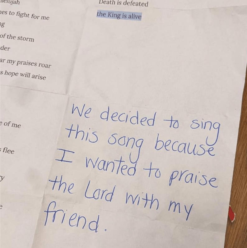 My granddaughter’s experience of praising the Lord on stage with her friend for the very first time with a music tract will not be forgotten. It’ll be a core memory; a sticky faith memory. She introduced themselves not by their names, but rather, “We decided to sing this song because I wanted to praise the Lord with my friend.” With words on the music stand and on the monitor the worship team uses along the back wall of their sanctuary, she and her friend belted out their love for the Lord with confidence, yet as nervous as you’d expect.