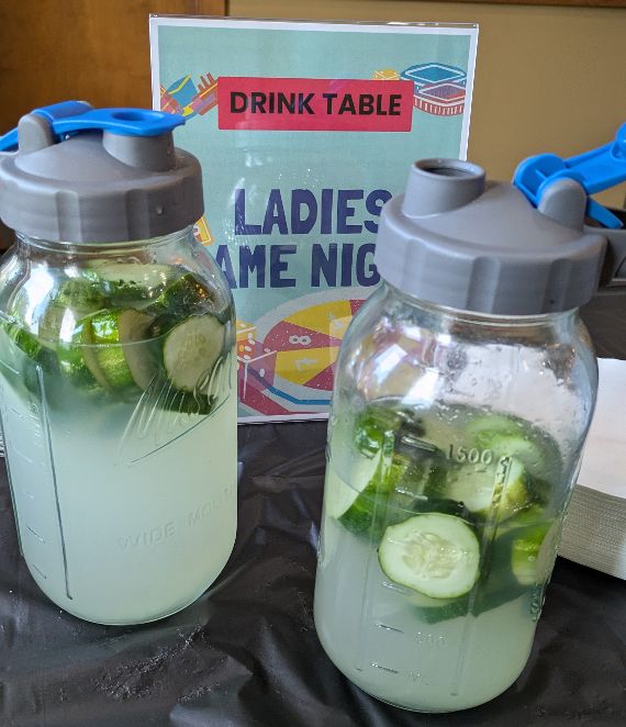 Refreshments: Cucumber lemonade, ice water, individual bags of chips, individual banana pudding cups (another generous lady brought brownie cups just because)