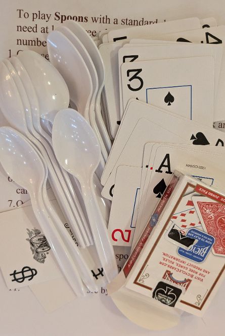 Tip: For games without a box (UNO, Spoons, War, etc.) I printed the rules and placed with the game pieces just to keep everyone on the same page for the original game play rules.