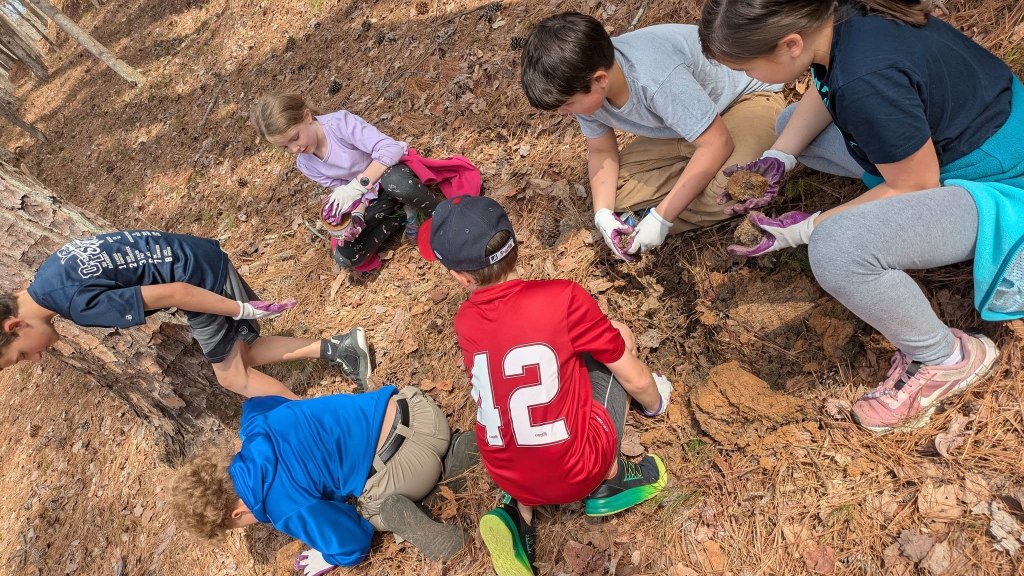 After cleaning up pine cones and sticks from a long driveway, we had some hands-on fun—digging for worms and fishing! Each child baited their own hook and spent time casting, reeling, and reflecting on 1 Peter 5:7: “Cast all your anxieties on Him, because He cares for you.” This sparked great discussions on why Jesus called fishermen to follow Him.